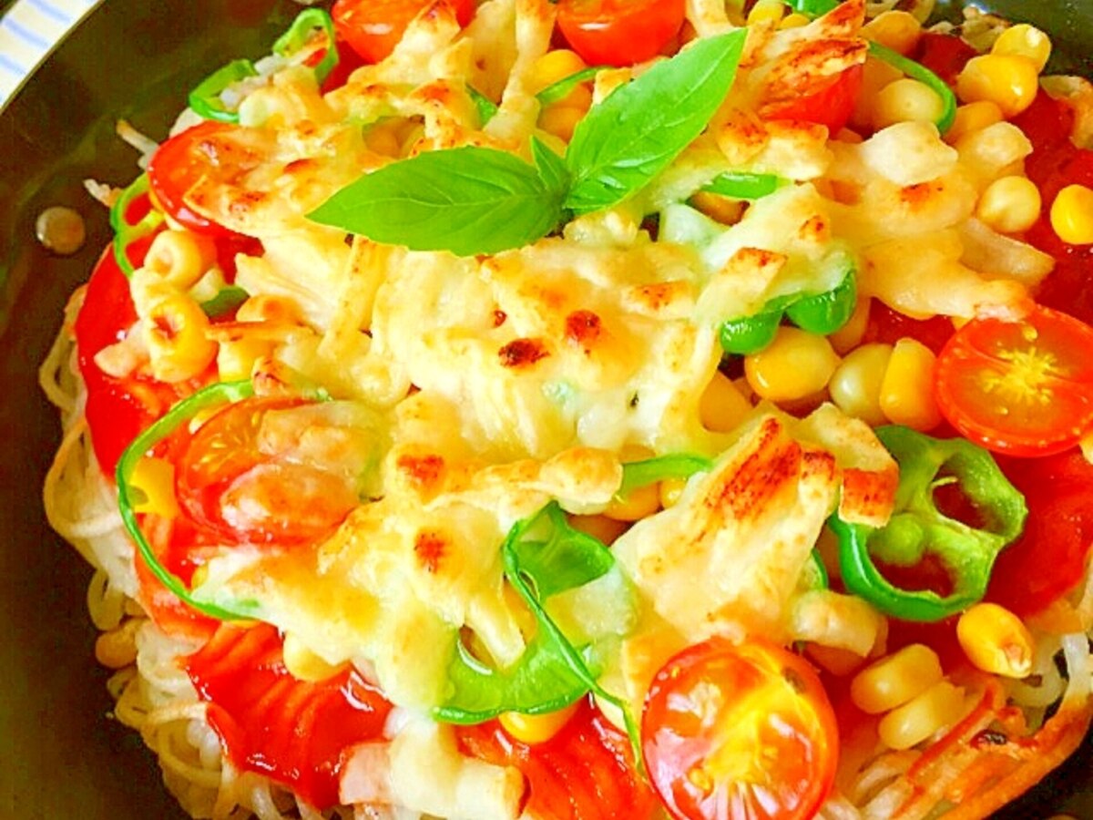 中山家アレンジ そうめんピザ レシピ 作り方 By 中山家のごはん クックパッド