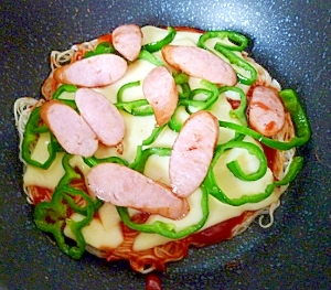フライパンで 余ったそうめんが子ども喜ぶ ピザ に